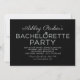 Moderne und stilvolle Einladungen für den Junggeselinnen-Abschied von Hochzeitsfeiern sind mit einem bemerkenswerten platingrauen Titel versehen, der mit dem Namen der Braut und dem Ring für die Verlobung von Diamanten personalisiert ist. Die Hintergrundfarbe ist schwarz. Passen Sie den Text mit den Details für die Nacht Ihrer Mädchen an.
