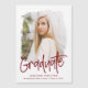 Trendy Abschluss Ankündigungsmagnet mit dem Foto des Absolventen in einem texturierten Maskenrahmen mit "Graduate" in einem bordeauxfarbenen, handgeschriebenen Skript. Personalisieren Sie die Titelseiten der Graduierungsankündigungen, indem Sie den Namen des Absolventen, den Namen der Schule und das Jahr des Abschlusses hinzufügen.