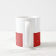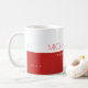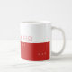 Eine moderne, rot-weiße Tasse, die mit Namen und Beruf (Architekt) personalisiert ist