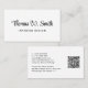 Moderne berufliche Visitenkarte mit Ihrem Namen in einem stilvollen, fett formatierten Skript und Ihren Titel und Kontaktinformationen (wie E-Mail, Telefonnummern, Firmenname und Postanschrift) in sauberer, einfacher Schrift. Fügen Sie die URL-Adresse Ihrer Website hinzu, um einen skalierbaren QR-Code zu erstellen, der mit Ihrer Website, Ihrem Portfolio, Ihrem Social Media-Profil oder einer anderen Plattform verbunden ist, die Ihre Arbeit präsentiert. Dies erleichtert Kunden und Kunden die Erkundung Ihrer Expertise.