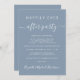 Modernes staubblaues Ambiente oder private Hochzeitsankündigung und Hochzeitsempfang oder Feier Party Einladung. "Happily Ever After Party" ist in einer Mischung aus schlichter weißer Typografie und einem stilvollen weißen Drehbuch mit Swashes geschrieben. Personalisieren Sie Ihre Heiratsankündigung und Empfang-Einladung und fügen Sie Ihre Namen in einem signaturähnlichen Skript hinzu. Auf der Rückseite, geben Sie Ihre Website-Adresse Hochzeit, um einen QR-Code für Gäste zu scannen, um alle Details und UAWG online, und fügen Sie Ihre Vornamen und Hochzeit und Empfang Daten.