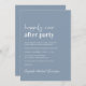 Minimal modernes staubblaues Design oder private Hochzeitsankündigung und Empfang-Einladung mit "Happily Ever After Party" in einer Mischung aus zeitgenössischer Weißschrift und fett-trendiger, weißer Typografie. Personalisieren Sie Ihre Heiratsankündigung und Empfang-Einladung und fügen Sie Ihre Namen in einem signaturähnlichen Skript hinzu. Auf der Rückseite geben Sie die URL-Adresse Ihrer Hochzeitswebsite ein, um einen QR-Code für Ihre Gäste zu erstellen, um online zu scannen und alle Details zu erhalten.