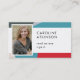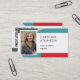 Einfache abstrakte geometrische Foto-Visitenkarte mit QR-Code. Blau, rot, grau, beige.
