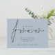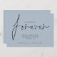 Moderner QR Code Wir entschieden uns für Forever Blue Save the Date Fügen Sie Ihren QR-Code zu Ihrer Hochzeitswebsite auf der Rückseite. Ein schlichtes Design auf staubblauem Boden, um Ihre Gäste zu einem rett Ihres Datums einzuladen. Wir entschieden uns für Forever, welches in einem stilvollen Set-Skript ist in der Mitte. Die Erholung des Textes können Sie leicht personalisieren. Text- und Hintergrundfarben können geändert werden, wenn Sie Ihr Hochzeitstil besser Anzug über die weitere Option anpassen möchten.