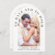 Moderne, bogenförmige Hochzeitseinladung mit Foto und "To Have And To Hold" in eleganter Serifentypografie. Fügen Sie unter Ihrem Foto Ihre Vornamen, Ihr Hochzeitstermin und Ihren Ort hinzu. Auf der Rückseite, personalisieren Sie Ihre Einladung in einfachen Typografie und geben Sie Ihre Website-Adresse Hochzeit zu erstellen einen QR-Code für Ihre Gäste, um UAWG online scannen und erhalten Sie zusätzliche Hochzeitsdetails wie Unterkunft.