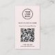 Moderne und berufliche, hellrosa Visitenkarte mit QR-Code für Kunden oder Kunden, um nach einer Liste Ihrer Produkte, Dienstleistungen, Preise oder anderen Informationen zu suchen. Laden Sie Ihr Logo und Ihren QR-Code hoch und fügen Sie Ihren Firmennamen, Ihre Website, Ihren Slogan, Ihre Telefonnummer, Ihre Straßenanschrift usw. in einfacher Typografie hinzu.