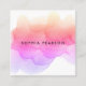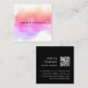 Chic Aquarell Visitenkarten in einem einzigartigen quadratischen Format haben Ihren Namen oder Firmennamen auf einer blühenden Inkblot-Abbildung in farbenfrohen Tönen von rosa, violett und goldfarben Korallen platziert. Fügen Sie Ihre vollständigen Kontaktdaten auf der Rückseite in weiß auf schwarz, mit einem anpassbaren QR-Code.