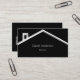 Schwarzer Hintergrund mit einem silberfarbenen abstrakten Haus/Dach. Personalisieren und fügen Sie Ihren Namen und Text auf der Vorderseite. Zurück: Vorlagen für Ihren Namen, Titel, Telefonnummer, E-Mail- und Website-Adresse, QR-Code für Ihre Website oder Ihr Social-Media-Konto.