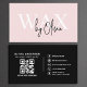 Das elegante, rosa und schwarze Design mit fett moderner Typografie, mit einem skannablen QR-Code auf der Rückseite für Sofortbuchung oder Social Media. Ideal für Wachspezialisten, Ästhetiker und Schönheitsexperten, die eine stilvolle und berufliche Visitenkarte mit zeitgenössischem Touch gewollt haben.