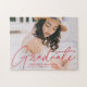 Feiern Sie den Abschluss mit einem maßgeschneiderten Foto Abschluss Rätsel! Das Rätsel enthält das horizontale Foto des Absolventen mit "Graduate" in einem modernen, roten Skriptüberlagerungsformat. Personalisieren Sie das Design, indem Sie den Namen des Absolventen, den Namen der Schule und das Abschluss Jahr.