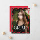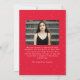 Feiern Sie Ihren Gymnasialabsolventen mit dieser stilvollen Abschluss-Ankündigung, die ein vollblütiges Foto mit vertikaler Blende, gerahmt durch eine moderne rote Wellenlinie. Das Wort "Grad" zeichnet sich durch fett gedruckte, weiße Buchstaben aus, während der Name, die Schule und das Klassenjahr des Absolventen eine persönliche Touch hinzufügen. Der Rücken zeigt ein horizontales Foto mit Platz für eine individuelle Nachricht und ist damit der ideale Weg, diesen Meilenstein mit Freunden und Familie zu teilen.