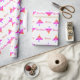 Modernes Rainbow Pink Weihnachtsbaum Muster Urlaubspapier. Ein Weihnachtsbaummuster mit Regenbogenbäumen in rosa, lila und gelben Farbtönen auf weißem Hintergrund.