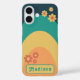 Mit diesem 60er & 70er Vintag Rainbow Arch iPhone 16 Case mit Original-Kunstwerken der Künstlerin Catherine Sweetman bringen Sie Retro-Vibes in Ihr Accessoire. Das kühne Design zeigt einen farbenfrohen Regenbogen in Blau, aquamarin, Gelb und Orange mit einem schlichten Blume-Motiv und einer groben Hippie-Typografie. Personalisieren Sie es mit Ihrem Namen mithilfe benutzerfreundlicher Vorlagen. Ein stilvolles, nostalgisches Gehäuse, das sich perfekt für Retro-Liebhaber, Blume-Power-Fans und boho-Ästhetik eignet.