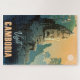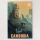 Dieses phantastische Reiseplakat besticht durch eine Kambodscha-Statue mit einem Steingesicht bei Sonnenuntergang inmitten des Dschungels. #travel #adventure #cambodia #modern #retro #stonestatue #sunset #jungle #fun #stone #face #old #altertümliches #