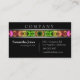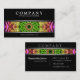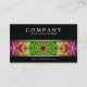 Stilvolle moderne Visitenkarte mit einem größtenteils schwarzen Hintergrund. Zwischen dem Silber stehen farbige Linien die Details einer rosa und grünen Blume Mandalashow, einen netten Pop der Farbe bereitstellend, diesen Kontakt aufnehmend zu kardieren heraus von der Menge. Klicken fertigt besonders an, um mehr Kontrolle über Schriftartwahlen und den Gebrauch von Raum für Text zu haben.