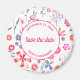 Heller Garten mit modernen pinkfarbenen und orangefarbenen Blume in verstreuten Formen auf weißem Hintergrund. Hübsch und lebendig mit frisch Bohemischem Ambiente. Eine wunderschöne Koordination Speichern Sie die Datums Magnete als praktische Erinnerung für Ihre Gäste. Ändern Sie den Text in Anzug Ihrer Feier.