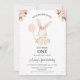 Moderner rosa, floralweißer Hase 1. Geburtstag Einladung