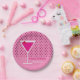Ein moderner Entwurf eines rosa Cocktails oder ein Welt, Martini-Glas wird auf Rosa mit einem Tupfenhintergrund in einem kastanienbraunen Auberginenschatten gekennzeichnet. Festlich, stilvoll und Spaß. Alles Gute zum Geburtstag wird auch in Rosa geschrieben. Personifizieren Sie einfach mit dem Geburtstagsnamen. Jede mögliche Benennung kann geändert werden oder gelöscht werden, um schlicht zu verlassen. Zusammenpassende Servietten in meiner Einladungskategorie, sehen dann Servietten.