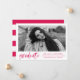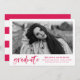Ankündigen Sie Ihren Abschluss mit unseren stilvollen, modernen Watercolor Pinsel Script Graduierungsankündigungen! Die modernen Graduierungsankündigungen zeigen das Foto des Absolventen in Weiß mit "Graduierte" in einem trendig-rosa Aquarellpinsel-Skript an. Fügen Sie den Namen des Absolventen, die Schule, das Abschluss-Jahr und die künftigen Pläne hinzu. Die Ankündigung kehrt zu einem hellrosa und weiß gestreiften Hintergrund mit Platz für zusätzliche Fotos und Texte zurück.
