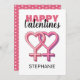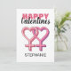 Überwältigen Sie Ihre Freundin, Ehefrau, Partnerin oder Geheimnis mit dieser niedlichen, vereinfachenden, rosa Valentinerkarte. Diese LGBT-Karte enthält den Text "HAPPY VALENTINES" 2 Herz-Frauen-Symbole ineinander greifen und den Namen der Person, die Rückseite der Karte hat einen Hintergrund von rosa mit weißen Polka Punkte. Die Stile, die Größe und die Farbe des Schriftartes können durch Klicken auf den Link nach der Personalisierung anpassen geändert werden.