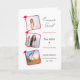 Moderne minimalistische Abschluss-Foto-Collage für sie in Rosa und Rot auf Weiß mit niedlichen Graduierungsmütze auf jedem Foto Rahmen und schwarze Typografie. Personalisieren Sie mit Ihren eigenen Fotos, Name und Botschaft für den wunderbaren Absolventen.