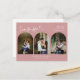 Werfen Sie einen Blick auf diese elegante, moderne, minimale Save the Date 3 (tri) Arch Foto Collage Postcard, die Sie Ihrer Familie und Freunden verkünden können, dass Sie heiraten! Dieser wunderschöne Magnet zeichnet sich durch einen atemberaubenden und wunderschönen handgeschriebenen Script-Kalligraphie-Schriftart aus und ist mit einem klassischen Serif-Schriftart in einem staubigen rosa Hintergrund gepaart, um einen zeitlosen Look zu erhalten. Es ist perfekt für Ihr Hochzeitsthema! Passen Sie die Namen an und ersetzen Sie die Fotos durch Ihren und den Monat, Tag und Jahr (zweistellige Zahl), Ihren QR Code und die URL der Hochzeitswebsite, um Ihrer Ankündigung Datum freihalten Postkarte eine angenehme persönliche Touch zu geben. Bitte beachten Sie: Der "Save the Date"-Wortlaut und das Herz können nicht bearbeitet, geändert oder gelöscht werden. Sie können die Postkarte nach Ihren Wünschen für Hochzeiten anpassen und personalisieren.