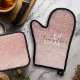 Moderner rosafarbener Glitzer Glitzern Personalisi Ofenhandschuh & Topflappen-Set
