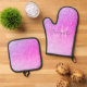 Moderner rosafarbener Glitzer Glitzern Personalisi Ofenhandschuh & Topflappen-Set