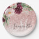 Moderner rosafarbener Glitzer und Blume mit Namen Pappteller
