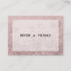 Modernes Rosegold Glitzer Salon Kundenseferral . Bearbeiten Sie Ihr Produkt in wenigen Minuten, indem Sie Ihre Daten hinzufügen. Sie können den Schriftart/die Farbe/Position durch "weitere Personalisierung" ändern. Ideal für Makeup, Nägel, Lashes, Friseur und vieles mehr.