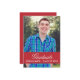 Einfache Ankündigung und Einladung einer modernen Abschluss-Fotokarte mit einer roten Band auf der Vorderseite. Personalisieren Sie die Ankündigung des Abschlusses mit Ihren Foto-, Namen- und Abschluss-Daten auf der Rückseite. Um die Schriftart- und Schriftart-Farben zu ändern, klicken Sie auf die Schaltfläche "Anpassen" unterhalb des Produktabbilds. Dort können Sie auch die Hintergrundfarbe auf der Rückseite der Einladung ändern.