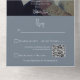 MIT ODER OHNE QR CODE IM UAWG BEREICH ODER MIT ODER OHNE ABENDESOPTIONEN. Dieses Design ist einfach, aber elegant, komplett mit dem Bräutigam oder Braut's letzte erste auf der Außentafel. Ein transparentes schwarzes Overlay bedeckt das hinzugefügte Foto. Boden und Rücken sind ein schönes staubiges Blau. Fügen Sie Ihrer Einladung auch einen personalisierten QR-Code hinzu, sodass Besucher schnell auf Ihre Hochzeitswebsite für Details, Anleitungen, Menüoptionen und mehr zugreifen können, oder fügen Sie Ihre Geschenkregistrierung Web-URL. Personalisierte All-In-One-Einladungen sind eine einzigartige Kombination aus einer schön gedruckten, maßgeschneiderten Einladung und einer leicht zu abreißenden perforierten UAWG-Postkarte. Und sie sind so einfach zu bedienen! Man falte einfach, dann Siegel die Rückklappe mit den drei beiliegenden Klarkleben, und Post. Und wenn Ihre Gäste Ihre persönliche Einladung erhalten, reißen sie einfach die perforierte RSVP Karte ab und lassen sie in der Mail an Sie zurück!
