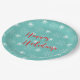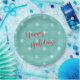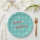 Stilvolles und modernes Türkis mit weißen Sternen und rotem Happy Holiday-Papierplatten, entworfen von Inge Lewis. Ideal für Weihnachtsfeiern. Weitere passende Produkte finden Sie im ingeinc.com Store / Boutique.