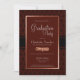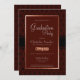 Eine moderne, rustikale Vintage Bordeaux-Graduierungsparty mit einem reichen schwarz-burgundischen Damast-Rahmen, der mit einer metallischen Kupfer/Rose-Goldgrenze modernisiert wurde.