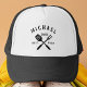 Retro coole Trucker "BEST VATER EVER" Hut in einem Logo-Stil Typografie Design mit Papa Name neben einer Grillmeisterabbild in schwarz. Gutes Geschenk für den Vatertag oder ein einzigartiges Geburtstagsgeschenk für den Vater, der Lieben zum Grillen.