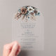 Diese moderne, elegante Wasserfarbe rustikale Blumenpinecone Hochzeit transparenten Acrylbogen Einladung kann mit Ihren Informationen und Hochzeitsdetails in stilvollen Typografie personalisiert werden. Entwickelt von Thisisnotme©
