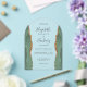 Diese elegante, bogenförmige, moderne Hochzeitseinladung besticht durch eine schlanke, grüne Aquarellwand, die mit goldenem Glitzer aus Imitaten bestickt ist. Der anpassbare Text kombiniert handschriftlich, kopperplate und kursiv Schriftart in Holzkohlegrau auf einem klaren Hintergrund.