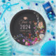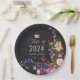 Klasse 2024! Elegante moderne Sommer-Blume-Illustration mit hübscher Blume und Pinsel-Script-Abschluss-Papierplatte mit einer modernen Kalligraphie-Typografie mit Rot, lila, Rosa, Terracotta-Blume auf dunkelgrauem Hintergrund