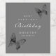 Schöne moderne Geburtstagsparty-Weinetiketten in neutralem Grau mit handbemalten Schmetterlingen, die ein blumengeschmücktes Rose-Muster enthalten. Für jeden Geburtstag individuell einstellbar