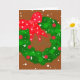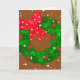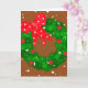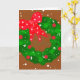 Ein Urlaubsprojekt mit einem modernen Kranz in Grüntönen mit roten Kugeln und einem roten Bogen. Schnee fällt und bedeckt die Dekoration. Passen Sie Ihre Wünsche an.
