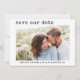 Moderner, trendiger Schreibmaschinentext Einfache Minimalistische Verlobung Hochzeitsankündigung Foto Rette unsere Date Card