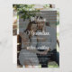 Eine moderne und trendige, doppelseitige Einladung zur Hochzeit, die Ihre Hochzeitsinformationen über eines Ihrer Lieblingsfotos zeigt, mit einem schwarzen transparenten Overlay, das durch ein elegantes weißes Skript hervorgehoben wird. Einfach mit den Details Ihrer Hochzeitsfeier in Weiß anpassbar für ein romantisches, modernes und stilvolles Ambiente. Die Rückseite der Karte zeigt ein zweites Bild, Ihre Online-UAWG und das Fälligkeitsdatum, einen individuell anpassbaren QR-Code, um Ihre Gäste auf Ihre Hochzeitswebsite, Ihre Monogramme und Ihr Hochzeitsdatum zu leiten.