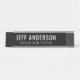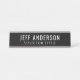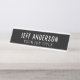 Die moderne schwarz-weiße Schreibtischmarke enthält den Namen des Mitarbeiters und den beruflichen Jobtitel in stilvollen Schriftart. Kann vollständig personalisiert werden mit Ihrem eigenen Text und Ihren Farben und Ihrer Wahl der Rahmenfarbe.