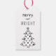 Diese modernen Geschenkmarken sind mit einem skurrilen Weihnachtsbaum mit einem Stern und den Wörtern "Merry and Bright" versehen. Die Rückseite des Tags ist mit abstrakten schwarzen Punkten und Formen geschmückt.