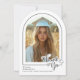 Ein klassisches Schwarz-Weiß-Abschluss Foto danke Ihnen, aber mit einer modernen Drehung. FRONT: "Danke" wird in einem trendigen, handgeschriebenen Skript mit niedlichem Herz gezeigt und überlagert teilweise das bogenförmige Foto. Personalisieren Sie die Vorlage mit Foto, Vor-/Nachnamen, Klassenjahr und Schule. BACK: Fügen Sie Ihre individuelle Danksagung und Signatur Zeile. Verwenden Sie das Bearbeiten-Tool, um den Text nach Bedarf neu zu positionieren. © Kimbellished, LLC