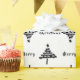 Modernes festliches Schwarz-weißes Weihnachtsbaumwrapping Papier. Ein modernes und einfaches schwarzes Weihnachtsbaummuster auf weißem Hintergrund mit einem schwarzen Frohen Weihnachtstext.