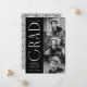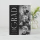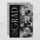 Stilvolle Abschluss-Ankündigung mit den drei Fotos des Absolventen rechts neben dem Design in einer vertikalen Anordnung. "Grad" wird in weißem, modernem Deko mit schwarzem Hintergrund dargestellt. Personalisieren Sie die Ankündigung des modernen Foto-Abschlusses, indem Sie den Namen des Absolventen, das Jahr des Abschlusses und den Namen der Schule hinzufügen. Das Design kehrt sich um, um einen schwarz-weißen geometrisch wirbelnden Hintergrund anzuzeigen. Perfekt für Uni-Abschluss und Gymnasiasten!