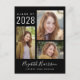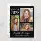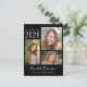 Moderne schwarze Abschluss Ansage Postkarte für sie mit einer 3 Foto Collage auf der Vorderseite. Fügen Sie ihren Namen in einem stilvollen, trendigen weißen Skript und ihre Klasse Jahr und Schule oder Universität in weißer Typografie. Fügen Sie auf der Rückseite ein zusätzliches Foto und eine benutzerdefinierte Meldung hinzu.