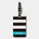 Das schicke Gepäckstück ist mit breiten schwarzen und cremefarbenen Streifen mit einem türkisfarbenen Akzent aus türkisfarbenem Wasser versehen. Passen Sie den Rücken mit Ihrem Namen und Kontaktdaten an.