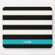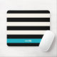 Das einfache und stilvolle Mousepad mit breiten schwarzen und cremefarbenen Streifen und einem türkisblauen Akzent im Aqua-Stil. Verwenden Sie das optionale Personalisierungsfeld, um einen Namen, ein Monogramm oder eine Nachricht hinzuzufügen!